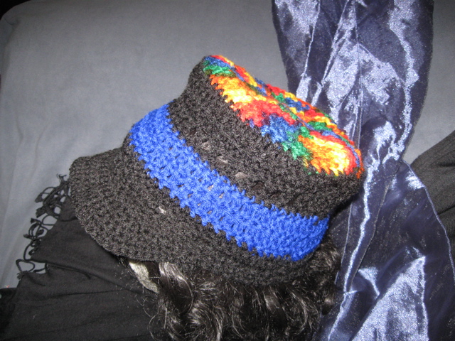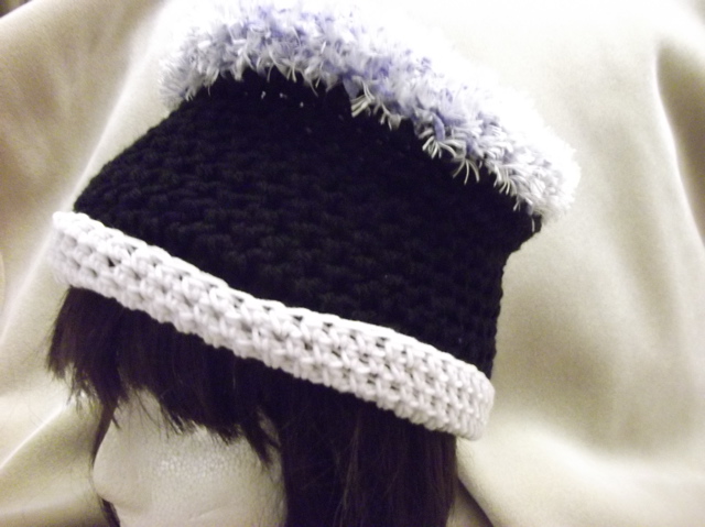 Black satin-soft and fuzzy red cloche style fold over tuque